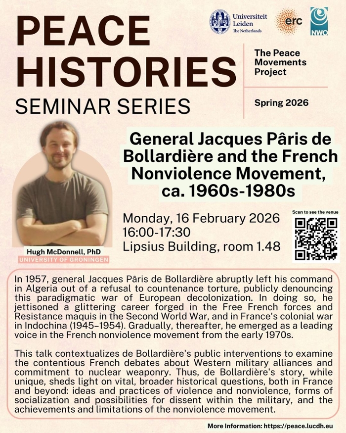 Hugh McDonnell of the University of Groningen will join us on February 16 to talk about his upcoming book The End of Violence: France and the Single Struggle of Jacques de Bollardière (Cornell University Press, 2026).